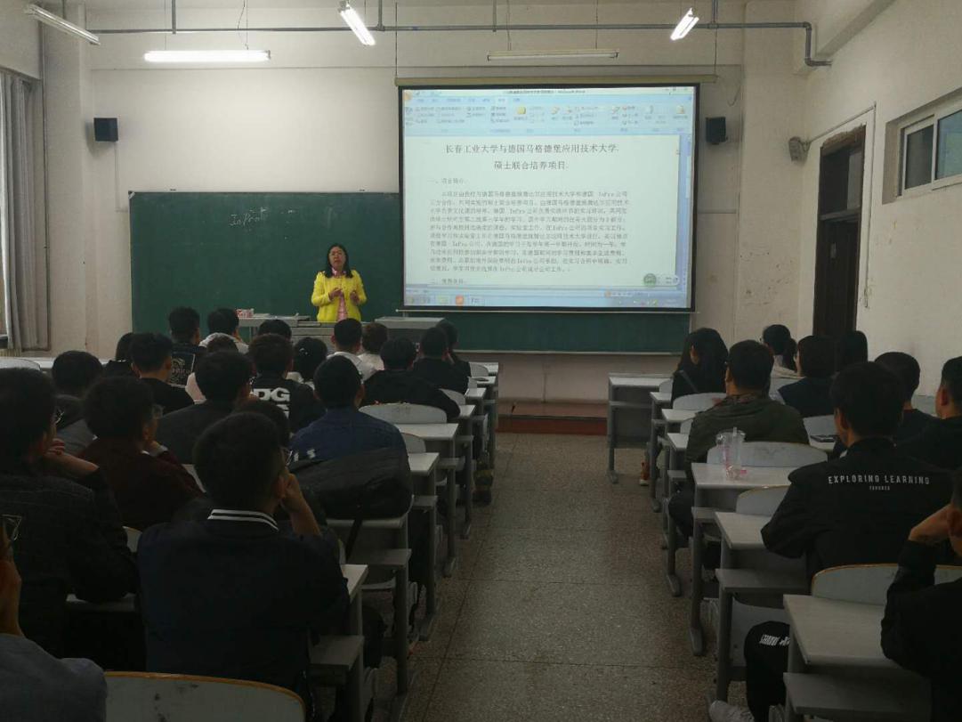 然后,给同学们讲解了推荐所需要的条件:1.全日制本科毕业且获学士学位。2.公司在读的控制科学与工程、控制工程、电气工程、机械工程一级学科下的机械电子工程专业一年级硕士研究生。3.在校所学课程需得到对方的认可。4.修满所有课程学分(赴德前),学习成绩优秀,外语达到B1以上水平,会德语的优先。5.按时缴纳公司的研究生学费。6.能保证在德学习的时间。
