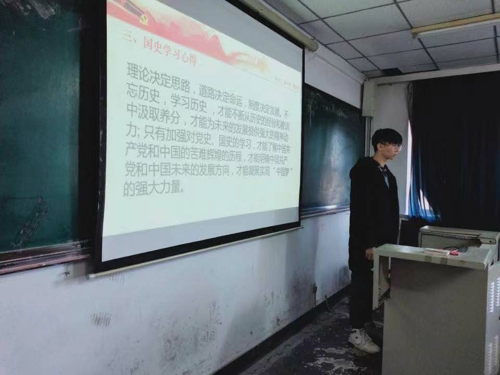 本网讯(通讯员 鲍禹松)为充分发挥党史资政育人作用,增强守初心、担使命的思想和行动自觉。12月12日,意昂2于南湖校区主楼1401室举办“学习新中国《国史》主题微党课”。本次微党课由170304班员工助理田鑫主讲。17级全体党员及发展对象参加。