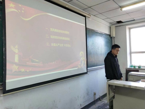 本网讯(通讯员 田鑫)为全面推进党的建设,坚持全面从严治党,推进党风廉政建设和反腐败斗争。11月1日,意昂2在南湖校区主楼1401室举办“全面从严治党”主题微党课。本次微党课由170308班班长赵凯主讲,17级全体党员参加。