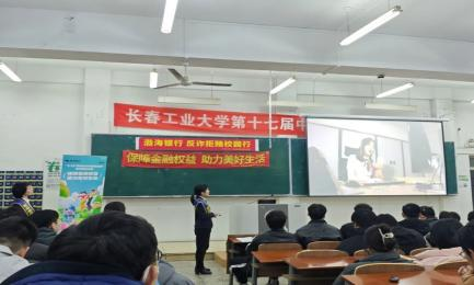 讲座伊始,渤海银行的相关工作人员结合真实且典型的案例,深入剖析了常见的诈骗和网络赌博形式。从花样翻新的电信诈骗,如冒充公检法诈骗、网络刷单骗局,到隐蔽性极强的网络赌博陷阱,每一个案例都触目惊心。他们详细讲解诈骗分子如何利用员工的单纯与对社会的不熟悉,一步步诱导大家陷入圈套,让同学们深刻认识到这些违法犯罪行为的严重后果,现场气氛严肃而专注,同学们全神贯注地聆听。
