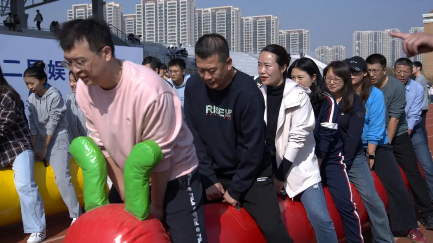 毛毛虫竞速项目趣味十足。老师们骑坐在色彩鲜艳的“毛毛虫”上,目光坚定。哨声一响,他们齐心协力,迈着统一的步伐推动“毛毛虫”向前。那专注的神情仿佛在进行一场重大的战役。他们喊着响亮的口号,“毛毛虫”在他们的推动下快速前行。赛道两旁,加油声此起彼伏。大家在比赛中感受着团队协作的力量,