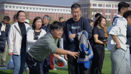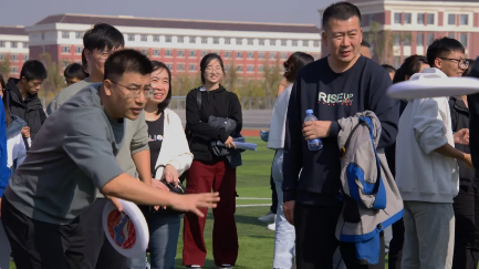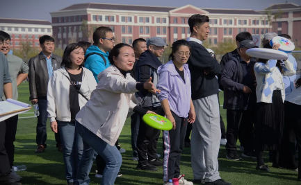 教工组的飞盘大作战精彩上演。老师们活力满满地站在场地中,手中紧握着飞盘,眼神专注而坚定。随着比赛开始的哨声响起,飞盘在空中划出一道道优美的弧线。