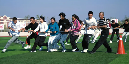看!旋风跑项目中,员工们如同旋风一般在跑道上飞驰。他们紧紧握住手中的杆子,快速绕过一个个标志杆,展现出惊人的速度与敏捷性。那奔跑的身影,仿佛是青春在燃烧。