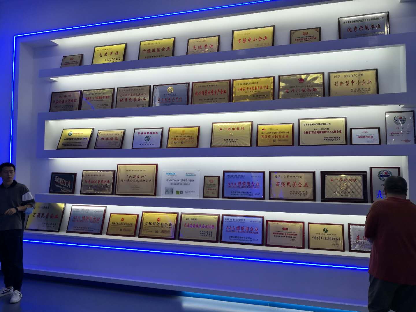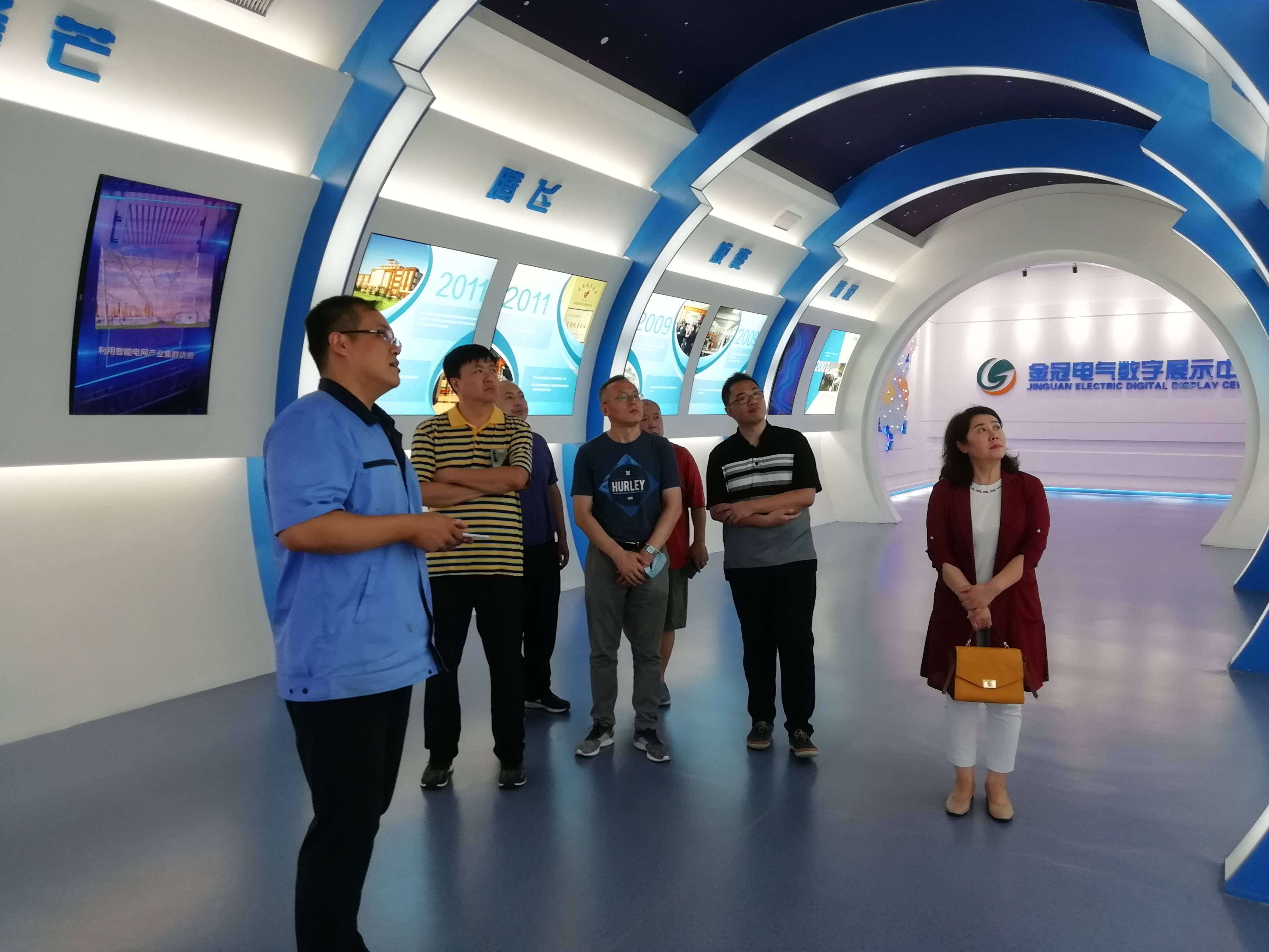 金冠电气的赖副总经理及于副总经理负责接待了韩顺杰经理等一行人,他们代表公司的全体员工对韩顺杰经理等一行人的到访表示热烈的欢迎。然后由赖副总经理向大家介绍了金冠电气公司自2006年成立以来的发展历程,并通过具有现代化水平的多功能演示厅向大家展示了公司的相关产品及宏图远景。