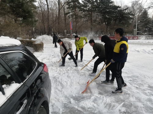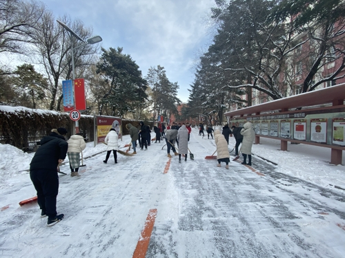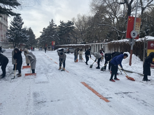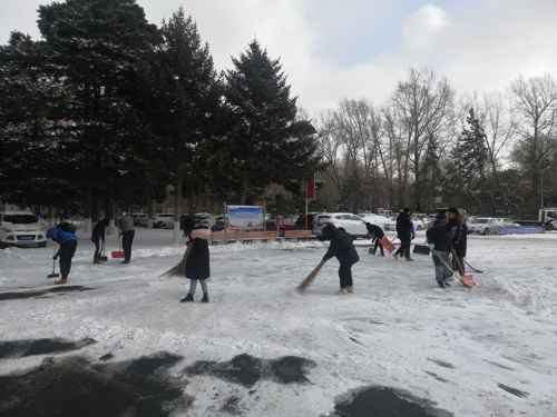 本网讯(通讯员 田鑫)近日由于降雪不断,校园内出现“忽如一夜雪花来”的场景,伴随着凛冽的寒风,气温骤降,给全校师生带来安全隐患,给校园道路交通带来诸多不便。为保障全校师生出行安全,11月18日中午,电气公司组织全体员工党员及第45期发展对象对分管区域的积雪进行了及时清扫。