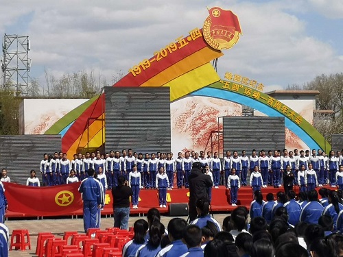 本次活动通过齐唱国歌、观看视频、舞台剧等多种方式引导共青团员们追忆历史,缅怀先烈,传承五四精神。老中青三代优秀人物代表以自身经历为基础,围绕新时代继承和弘扬五四精神、争做担当民族复兴大任的时代新人等内容,为参与活动的共青团员们奉上一段致敬青春的报告。上级党组织负责人为各校100名入团积极分子佩戴团徽。组织新团员齐颂入团誓词,新老团员齐唱团歌,一起为祖国新时代努力建功。