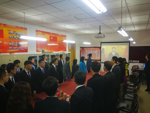 本网讯(通讯员 鲍禹松 郑昊)4月30日上午,纪念五四运动100周年大会在北京人民大会堂举行,中共中央总书记、国家主席、中央军委主席习近平出席大会并发表重要讲话。公司领导班子成员、专职组织员、主要员工干部共近80人在公司1301会议室、1401室收看“纪念五四运动100周年大会”直播。与此同时,公司广老员工分别在南湖校区、北湖校区利用教室、宿舍、实验室等不同场地集中或分散观看收听直播。