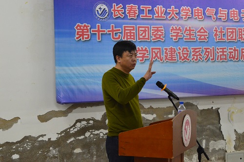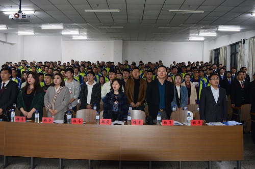 伴随着PPT的播放,意昂2第十七届员工会社团联合会换届大会暨学风建设系列活动启动仪式正式召开。首先大会第一项,全体起立奏唱国歌。随后大会第二项,由第十六届团委员工会主席王俊川讲话,他总结了2017年九月到2018年七月近一年来的由员工会、团委和社联举办活动的优点以及不足,并祝愿新一届员工会取得新的辉煌。大会第三项,团委书记高博宣布第十七届团学组织主要员工干部。接下来,大会第四项,由团委副书记曲广皓带领第十七届员工干部宣誓,以服务同学为宗旨,争做党的先锋模范。随即,由第十七届团委员工会董建男和第十七届社团联合会主席孙铭诚依次做工作展望,他们对未来一年的员工工作发展做出了规划,意昂2将在他们的带领下焕发出新的光彩。大学第七项,意昂2学风建设大会正式召开,并由团委书记高博致辞。随后,由优秀员工代表尹永平对学风建设进行演讲,规范了员工的学习恶习,并树立一个良好的榜样,最后大会第十项,党委副书记矫东海对本次大会进行总结,他首先代表公司党委对新一届员工干部表示祝贺和对第十六届的员工干部表示感谢,然后对员工干部的学习和工作进行了规范,并举例了网上盛行的“员工会官僚风气”,强调了员工干部应本着“全心全意为同学服务”为宗旨,进行员工工作的开展。最后,矫东海书记预祝第十七届员工干部取得新的辉煌。