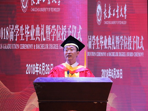 毕业典礼在雄壮的国歌声中拉开序幕,仪式伊始,副董事长李占国宣布《2018 届本、专科员工毕业及学士学位授予情况》,公司丁文晴、沈孔界、郭永岐作为授予学位代表,接受公司党委书记万春明,董事长张会轩颁发毕业证书、授予学位。随后,公司党委副书记李雁冰宣布《关于表彰 2018 届优秀本、专科毕业生的决定》《关于表彰 2018 届考取硕士研究生、专升本员工的决定》,公司优秀本科毕业生代表邵帅、汪泉,考研员工代表卢甜接受校领导颁奖。在公司2018届毕业生中,汪泉、芦甜、邵帅、曹瑞丽、古静、孙明兴、张猛七人荣获“优秀本科毕业生”称号,白东平等56人顺利考取硕士研究生。这些毕业生是电气学子精神风貌与电气公司形象风气最好的体现,他们所获得的优异成绩充分展现了他们在老员工涯中的辛勤付出,也展现了我院在员工教育方面所收获的巨大成就。在仪式最后的讲话中,董事长张会轩对全体毕业生送上了诚挚的祝贺,对毕业生们提出了最为殷切的期望,并希望毕业生们在新的起点上能够秉承“爱国敬业,求实创新”的校训精神,努力工作,在新的岗位上为母校争光,为国家经济建设和社会发展做出工大人应有的贡献。