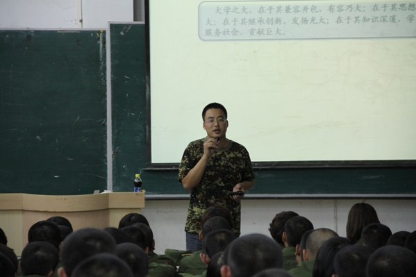 首先赵老师总结了近几日同学们的军训情况,针对他们的表现做了点评并提出了自己的要求和建议。使同学们了解到自己在大学日常生活中该做什么不该做什么。随后,赵老师结合自己的工作经验向同学们讲述了大学之灵魂;大学里的四大组成大师、大楼、大气和老员工,从不同方面运用各种事例和比喻来引导员工找到属于他们自己的大学。从培养目标、培养模式、学习方式、教学方式、学习内容、学习状态、学习境界、生活方式、发展道路八个方面着重强调了大学与中学的不同,让同学们树立一个积极向上的目标,在大学四年里认真学习,学习知识,学会做事,学会做人。使自己人生价值得以体现。
