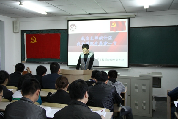| 公司员工党支部举行“我为支部献计谋,我为公司发展建一言”支部组织生活会 为深入贯彻落实科学发展观,提升员工党员的责任感,坚定党员的理想信念,按照公司员工党支部“创先争优”活动方案具体安排。公司员工党支部于5月19日17时,在南湖校区主楼1401室召开了“我为支部献计谋,我为公司发展建一言”组织生活会。公司员工党支部书记郑洪斌、赵爽,辅导员朱博参加了本次组织生活会,会议由赵爽老师主持。