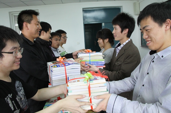 首先主持人介绍了本次活动的目的,然后进行了图书的交接仪式,学长们亲自将所捐的图书转交给歆航书友会的同学,双方进行交流和沟通,互相交流了读书的心得和学习的经验,整个会场沉浸在轻松愉悦当中。最后赵爽老师就本次活动作了总结,并希望同学们培养读书和学习的浓厚兴趣,提高自身的素养,带动身边的同学共同提高,并把工大人艰苦奋斗、开拓进取、踏实肯干的作风传承下去。