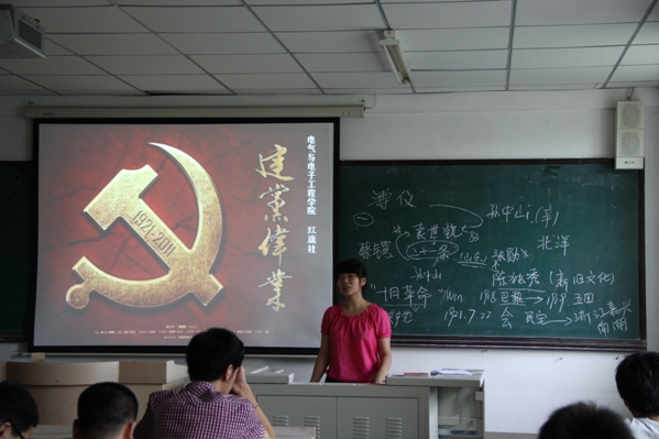 公司开展“建党伟业”交流会 为了让同学们知党、爱党、跟党走,公司于7月5日晚在南湖校区主楼1401室开展了主题为“建党伟业”交流会。公司员工党支部书记郑洪斌老师、赵爽老师,公司团委副书记赵健颖参加了此次活动。