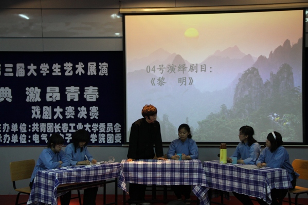 通过初赛选拔本次决赛共有8个公司的11个节目参赛。其中有《黎明》、《雷雨》等经典剧目,也有《大学进行曲》等原创舞台剧,情节多样,丰富多彩。机电工程公司带来的《穿越》,借住穿越实现自己的梦——寻一位女友,但是穿越出来的女友总是能让他大跌眼镜,让观众捧腹,用欢笑引爆全场。而后的《大爱无边》和《我的疯娘》都是取自真实故事,剧情朴实但引人深思。意昂2的话剧《梦想照进现实》又为我们指明了,梦其实就在我们手里,只看怎样把握。比赛的间歇由校十佳歌手一等奖获得者高文典、衣鑫分别演唱了歌曲《这就是爱》和《love song》。最后机电工程公司的《穿越》荣获了本次比赛的一等奖,并由嘉宾老师为所有获奖者颁奖。至此本次比赛圆满结束。