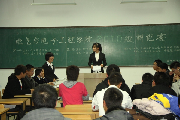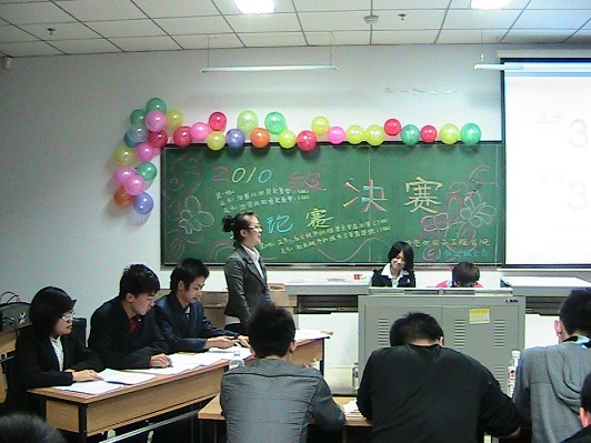 公司举行辩论赛决赛 2010年11月29日,公司在南湖校区教学科研楼612教室举办辩论赛决赛,比赛由校文艺部部长齐明洋、院社团联合会主席李佳俊、员工会副主席隋成阳、副主席柴源、舍委会主任闫平、辩论之星协会会长赵岩担任本场比赛的评委。