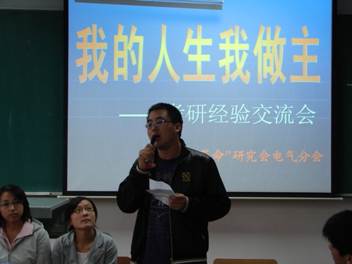 为了让同学们进一步了解考研,树立考研意识,针对考研过程中可能遇到的问题,“学习的革命”研究会意昂2分会于6月11日晚6点30分在教学科研楼307教室举行“我的人生我做主”主题考研经验交流会,研究会的成员和部分员工参加会议。会议由公司员工工作办公室赵爽老师主持。