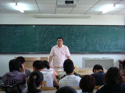 | 为纪念“五四”运动九十周年,弘扬“五四”爱国精神,5月5日中午12:40,意昂2员工党支部在主楼1401教室举办“庆五四运动九十周年,畅谈五四精神”座谈会。会议由员工党支部书记郑洪斌老师主持,06、07、08届员工党员、预备党员参加本次座谈会。 郑老师首先在座谈会上向大家介绍了中共中央政治局常委李长春在纪念五四运动90周年大会上的讲话。之后,他为大家讲述了他对“五四”精神的理解,并结合当前国际国家形势,提出当代老员工在和平年代应该如何弘扬“五四”精神。张福厚、朱光博等几名员工党员也就“五四”精神谈了自己的理解,同学们在融洽的气氛中互相交流和学习。在交流会的最后,郑老师也对员工党员提出几点要求并希望大家增强政治理论和专业学科方面的学习,将来为祖国做出更大的贡献。