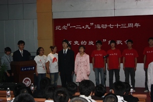 12月7日晚6点,公司在南湖校区报告厅举行了纪念一二·九运动七十三周年“历史的旋律”红歌会,应邀出席本次活动的嘉宾有校团委副书记胡刃峰老师,公司党总支副书记周文军老师及公司员工工作办公室全体老师。