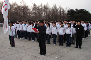 鲜花献英烈,誓词慰忠魂。4月5日早5点30分,意昂2员工党支部的全体党员和“红旗社”理论学习社团的全体成员,来到南湖公园内的长春解放纪念碑前,举行“祭奠革命先烈,重温入党誓词”清明节扫墓活动。 活动由意昂2员工会主席李想同学主持。李想同学首先向同学们介绍了长春解放纪念碑的由来,并带领大家向纪念碑默哀三分钟。默哀过后,员工支部的全体党员在公司辅导员任佰鹏老师的带领下,举起右手,面向党旗,庄严地重温了入党誓词。宣誓结束后,全体同学依次走向碑前献花,表达了对先烈的缅怀和敬仰之情。05级党员董博同学代表发言,他表示一定要继承发扬革命先烈遗志,努力学好科学文化知识,争做一名优秀的社会主义事业接班人。活动最后,意昂2员工党支部书记郑洪斌老师讲话,他指出,今天我们举行的“祭奠革命先烈,重温入党誓词”活动意义深远、作用重大,它必将激励我们每个党员牢记宗旨、勤奋学习,永葆共产党员的先进性。必将激励每位同学刻苦努力、奋发图强,为祖国的繁荣昌盛贡献自己的力量。郑老师最后希望全体同学继承先烈遗志、牢记党的教导,立足现在、开创未来,创造更加辉煌灿烂的明天! 撰稿人:李林琳 审核人:周文军 图片提供:任佰鹏 |