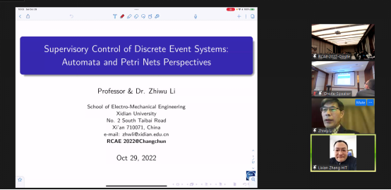 IEEE Fellow、西安电子科技大学李志武教授作了题为Modeling and Control of Discrete Event Systems: Automata and Petri Nets Perspectives的主旨报告
