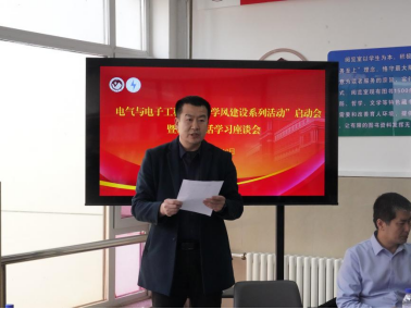 公司经理董博讲话,他讲到,公司始终坚持以学风建设为根基,以学术创新为驱动,在人才培养、团队建设和科研攻关等方面取得显著成效。在团队建设方面,本科专业建设成果突出,形成了特色鲜明的学科体系。科研工作始终走在公司前列,紧密对接产业需求,产出了一批具有重要影响力的创新成果。并表示,公司全体教师将以更加饱满的热情投身学风建设,进一步优化学术生态,为公司高质量发展注入强劲动力。