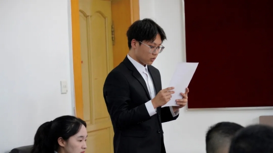 员工代表蒋昊轩在发言中承诺,员工干部将充分发挥桥梁纽带作用,积极配合班主任工作,凝聚班级力量。未来将带领同学们提升学习效率,强化政治素养,共同营造优良班风,打造互帮互助、携手进步的班集体。